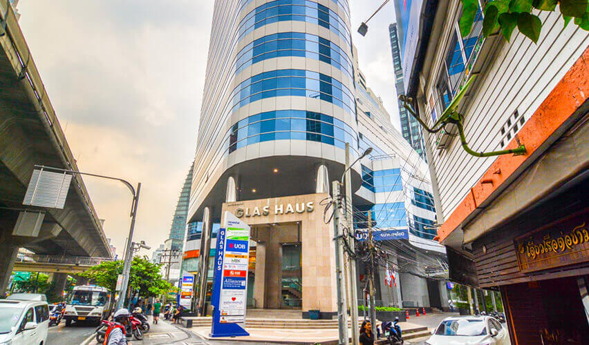 アソーク駅徒歩5分のオフィスビル「Glas Haus Building(グラス・ハウス・ビルディング)」。