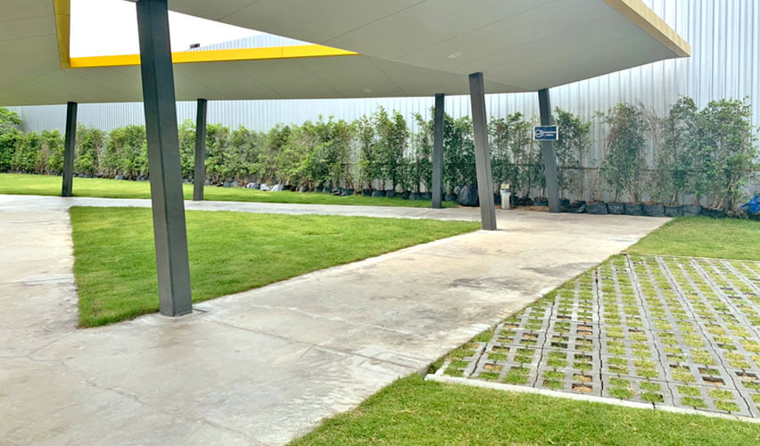 環境に配慮しており、オフィス棟の屋根は、すべてソーラーパネルとなっています。